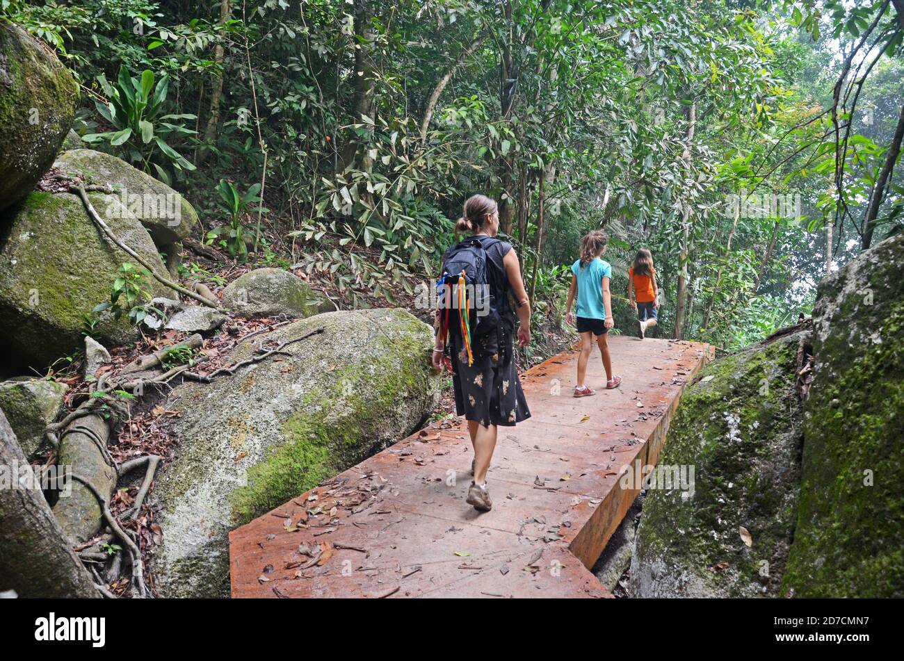 A Family Of Tourists Walks Along A Boardwalk In Penang National Park Taman Negara Pulau Pinang Malaysia Stock Photo Alamy